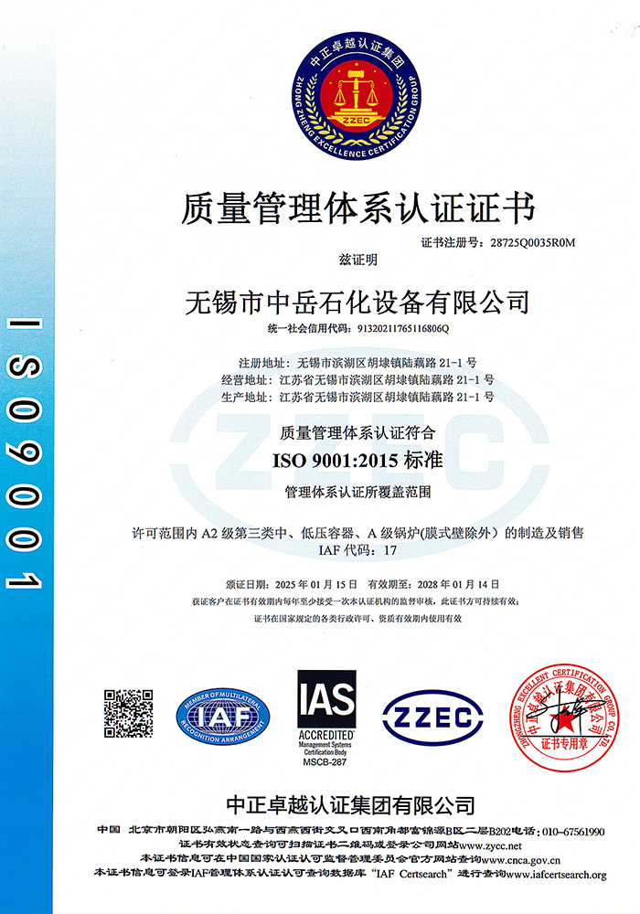 中岳石化下設四個控股子公司——無錫市中岳石化設備有限公司、無錫華凱環境工程有限公司、山西中岳實業有限公司、武漢中岳節能技術有限公司??偛课挥诮洕l達的長江三角洲,風景秀麗的太湖之濱——無錫市胡埭工業園區。是專業生產石油、化工、醫藥、染料、冶金、環保、焦化等行業用成套設備的專業公司。公司銀行資信等級4A級,公司注冊資金:3080萬,并獲得江蘇省高新技術企業、無錫換熱技術工程裝備中心證書,同時也是國內外主要工程公司設計院的合格供應商。